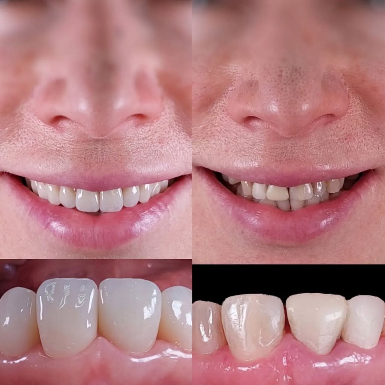 Пломбы, коронки и виниры не отбеливаются. Если просто осветлить зубы, а старые пломбы оставить — улыбка будет пятнистой. Стоматолог предупредит об этом заранее и предложит заменить видимые реставрации после отбеливания — для гармоничного результата.